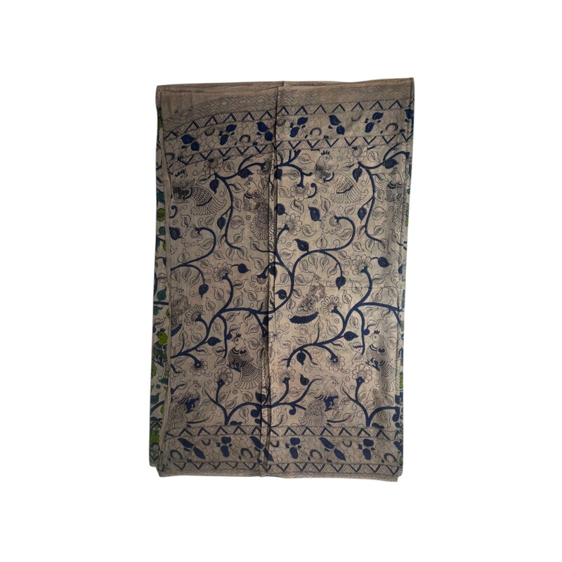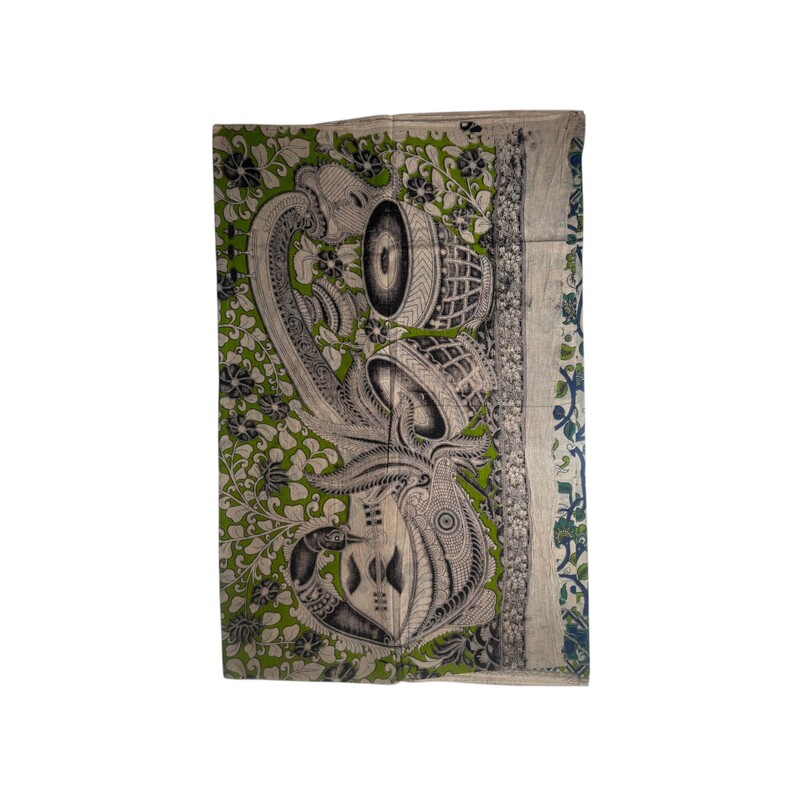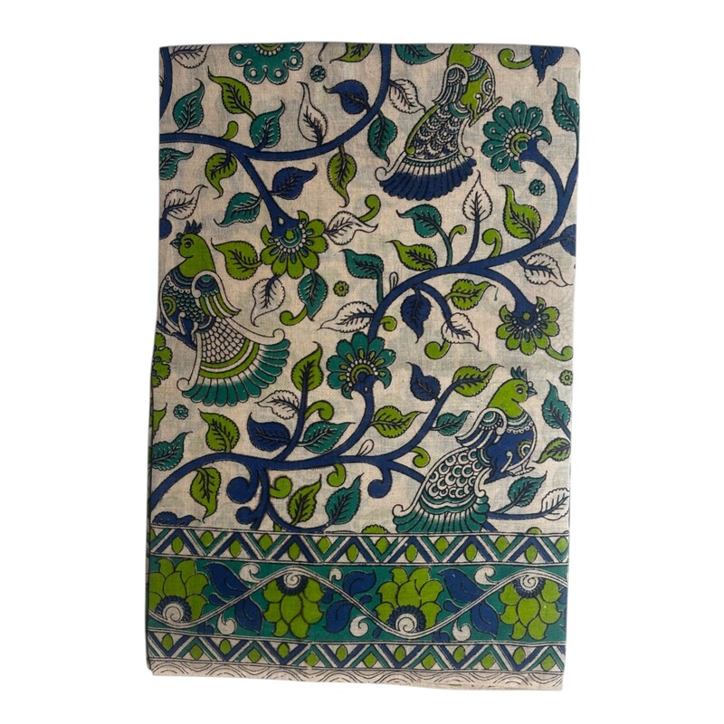 Zora Cotton Kalamkari - KL-03 -Cream/Green Parrot
